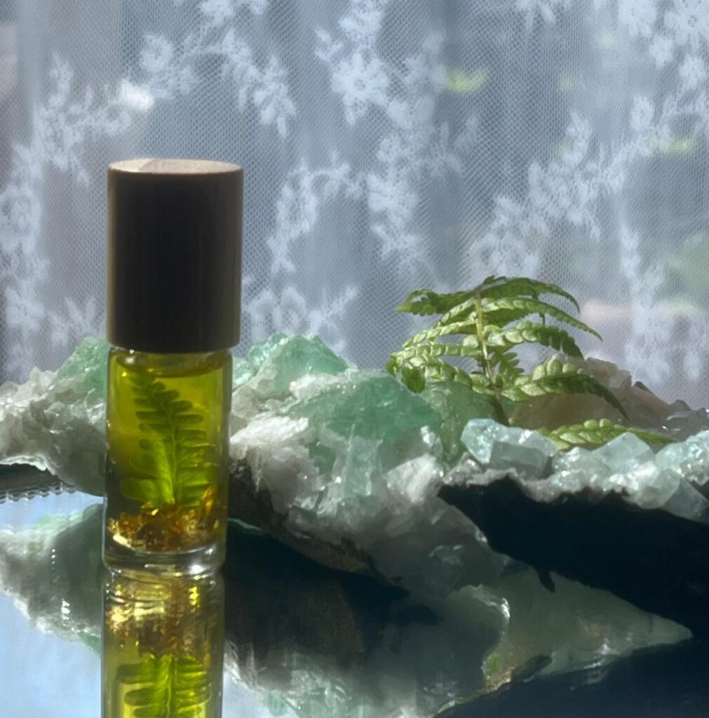 Vorig voorjaar kwam het weten, werd het zaadje al geplant. Tijdens de Yulenachten kwam het beeld en werd het helder. Dit voorjaar ontwikkelde het zich. En tijdens de wassende maan van vorige week zag Gouden Zijnsolie het daglicht. Zeven essentiële oliën kondigden zich aan, vergezeld door bladgoud, apofyliet, bergkristal en een stukje koningsvaren. Zachtgroene olie in een fijn klein flesje met aventurijn rollertje en bamboe dop. Met een frisse, zachte natuurlijke geur.